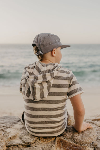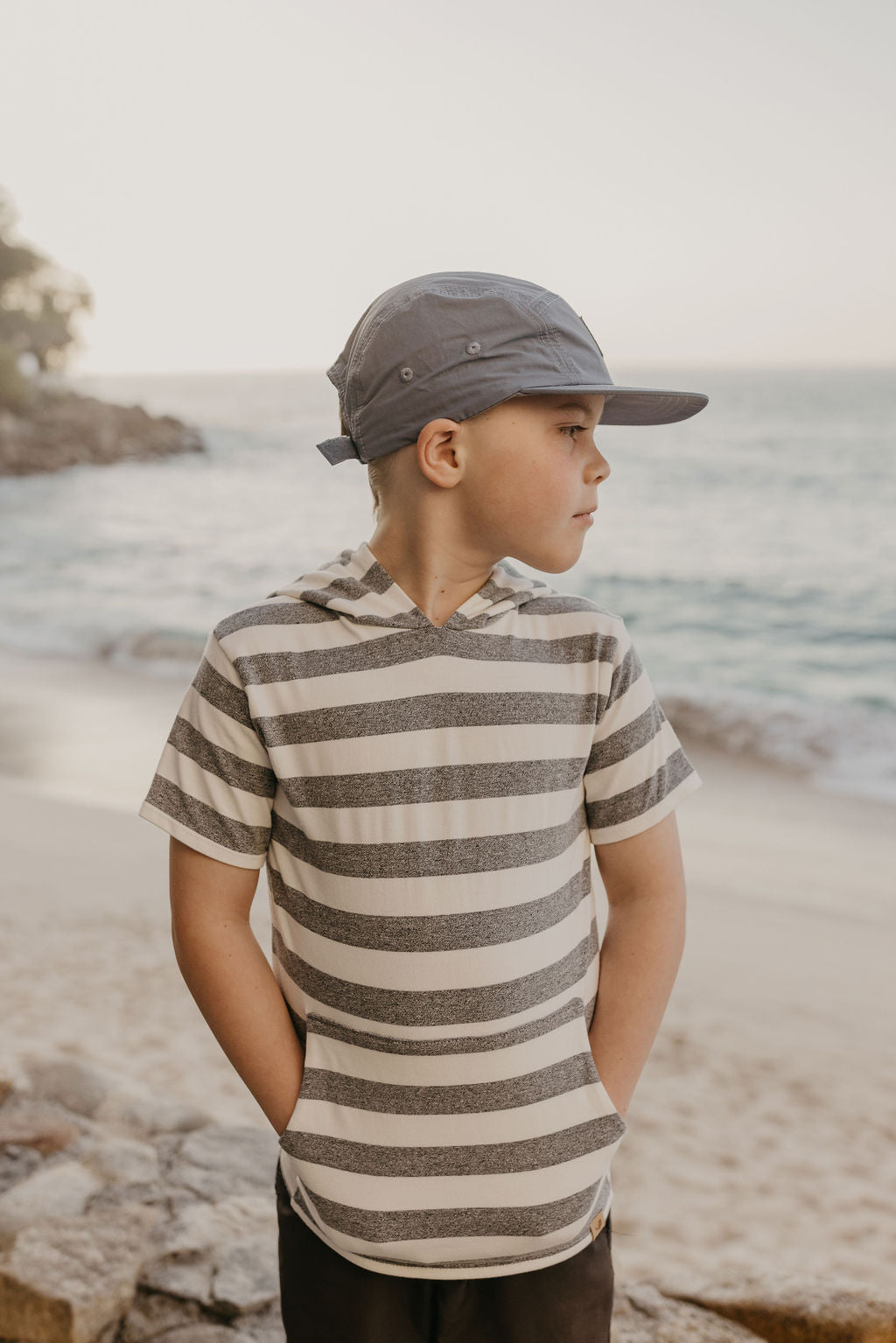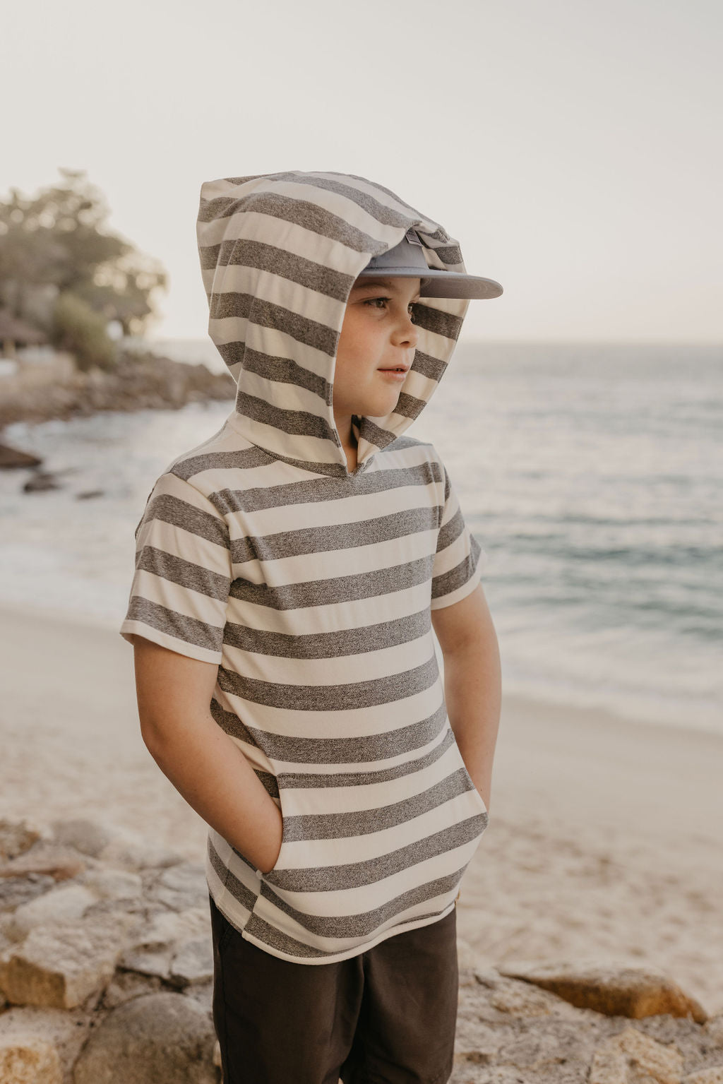 I got the striped top for my daughter and it will be perfect to pass on to her little brother. The small grey stripes are so cute, and it is THE SOFTEST material ever! The hood is extra large, which is really fun, and the pocket in front is perfect for collecting all of the little treasures they find. She is in between sizes so I sized up just slightly and she will be able to wear it for quite a while. Thinking about coming back for the other pattern!
